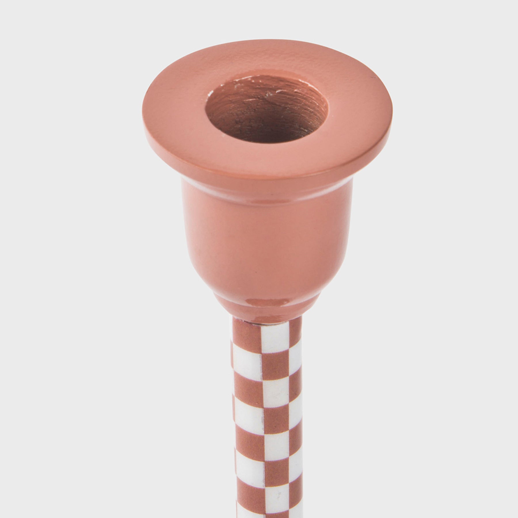 Add a playful pop to your holiday décor with this dusty pink candle stick. Featuring a charming checkered stem and a soft, warm hue, it brings a modern yet nostalgic flair to festive tablescapes.